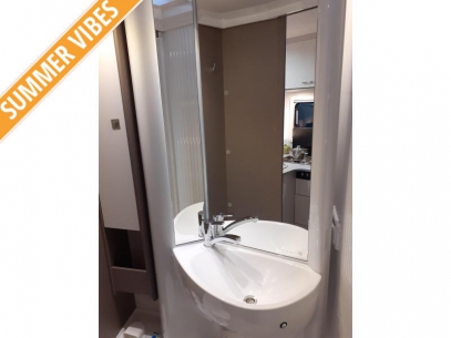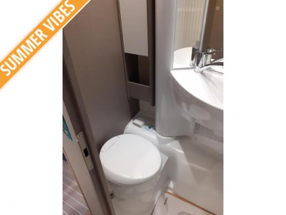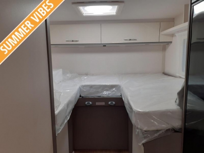 In de camper vindt u onder meer een ruim tweepersoons bed dat in de lengte is geplaatst. In de 2 aparte bedden heeft ieder zijn eigen slaapplek. U kunt in deze camper genieten van een uitstekende nachtrust dankzij de lattenbodems en de traagschuimmatrassen op de bedden. In de badkamer vindt u een wastafel om u op te frissen, alsmede een ingebouwd cassettetoilet. In de camper kunt u ook douchen. Er bevindt zich een doucheruimte naast het slaapgedeelte.