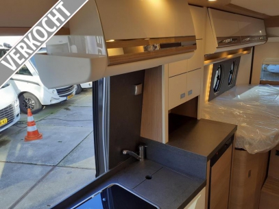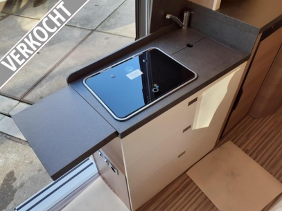 Een prima gelegenheid om gezellig te eten of nieuwe plannen te maken wordt gevormd door de halve treinzit. Centraal in de camper bevindt zich de middenkeuken, uitgerust met een spoelbak, kraan en 2-pits kooktoestel. De 10 liter boiler, die in de camper is ingebouwd, voorziet u snel van warm water. De koelkast met vriesvak biedt voldoende ruimte voor heel uw voorraad.